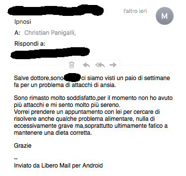 Recensioni, alcuni feedback ricevuti dopo le sedute ipnotiche
