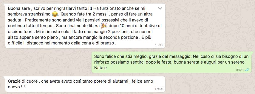 Testomonianze e feedback sull'ipnosi per dimagrire.
